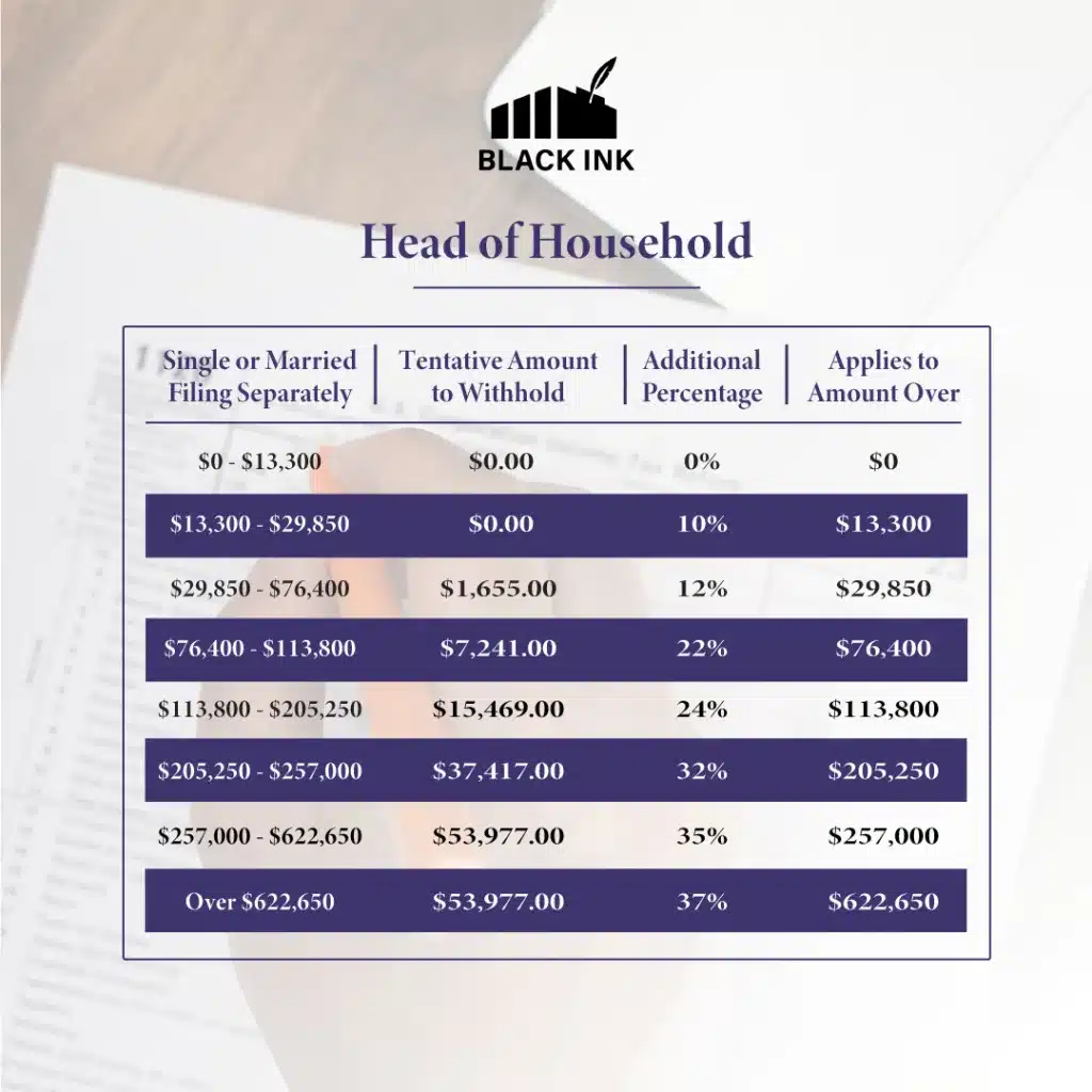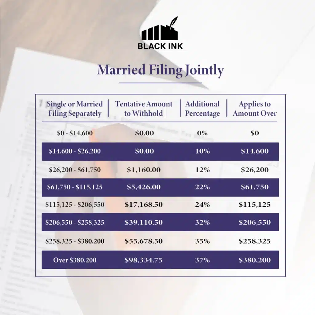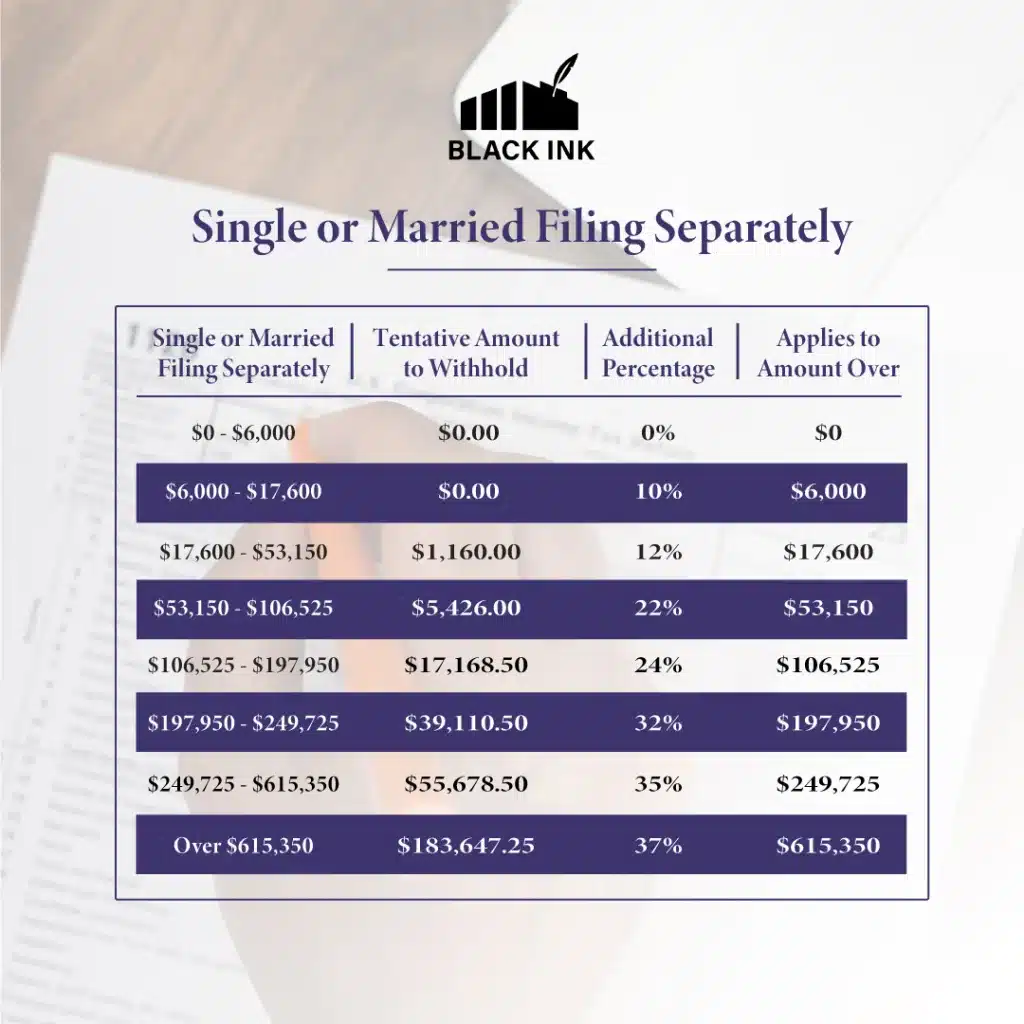 Income tax rate withholding tables for 2024-25